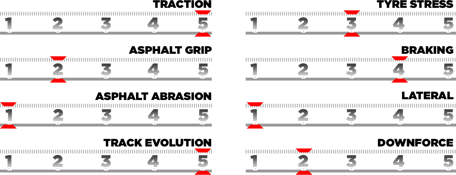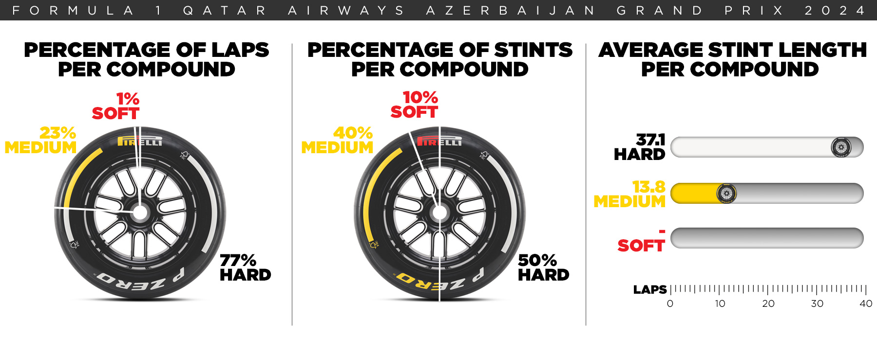 На городской трассе с низким уровнем сцепления и износа использование такого же набора, как в 2024 году, неизбежно привело бы к стратегии одного пит-стопа. По крайней мере, такой выбор, учитывая, что в этом году шины гораздо меньше страдают от грейнинга, открывает возможность для стратегии с двумя остановками. Более того, очевидно, что в этом году, особенно недавно в Монце, команды и пилоты научились эффективно управлять шинами, поэтому гонка вряд ли увидит кардинально разные стратегии. Несмотря на то, что это городская трасса, в Баку есть несколько очень длинных прямых, где автомобили развивают очень высокие максимальные скорости, создающие значительные вертикальные нагрузки на шины.