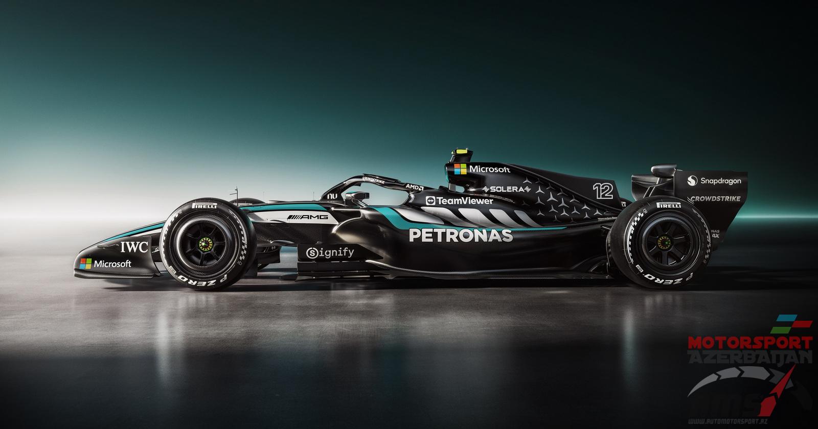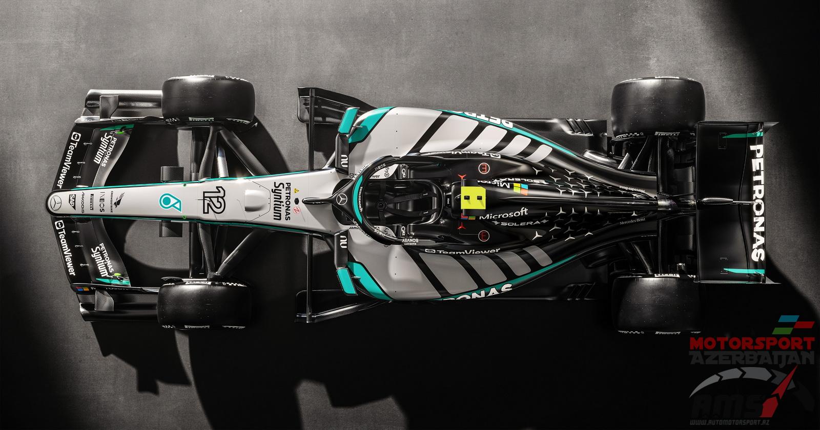 Верхняя часть боковых обтекателей украшена ромбовидным рисунком, вдохновленным дизайном AMG, дополняющим культовый узор трёхконечной звезды Mercedes на крышке двигателя».